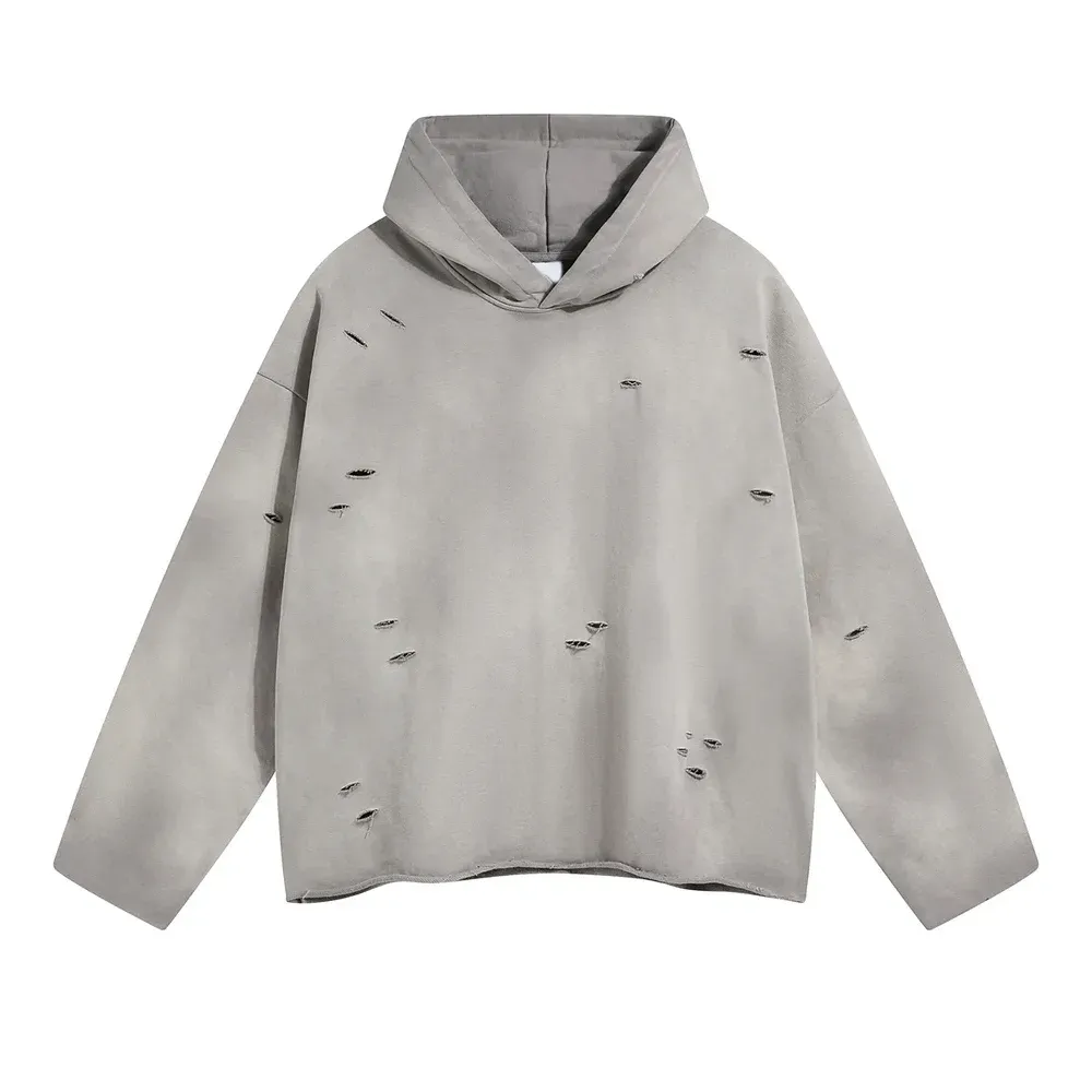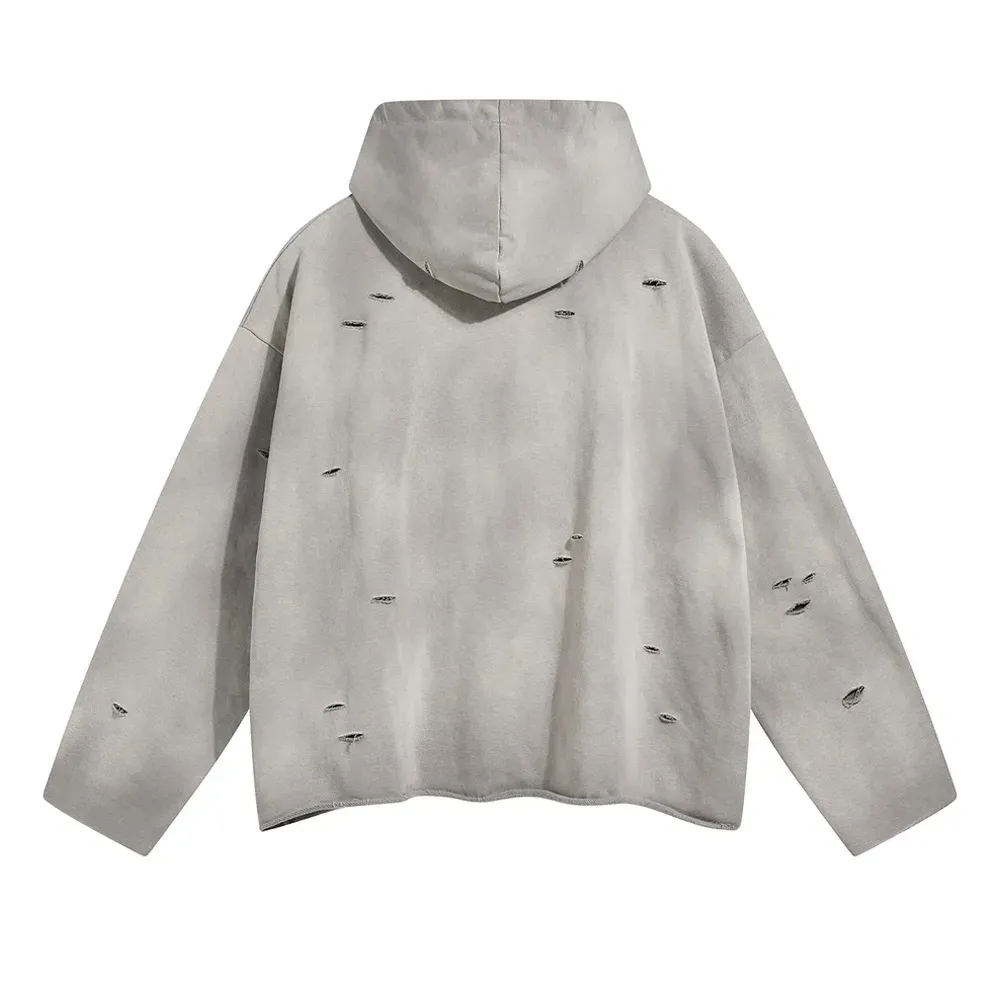 Acid washed ripped hoodie, french terry inner, this heavyweight hoodie will keep you warm in the cold weather.