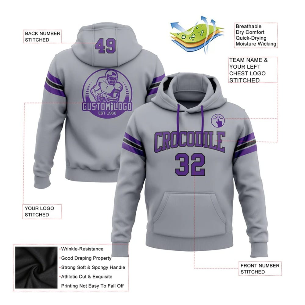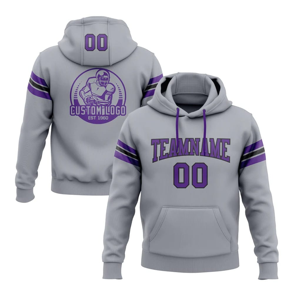 - Custom Stitched Gray Purple-Black Football Pullover Sweatshirt Hoodie