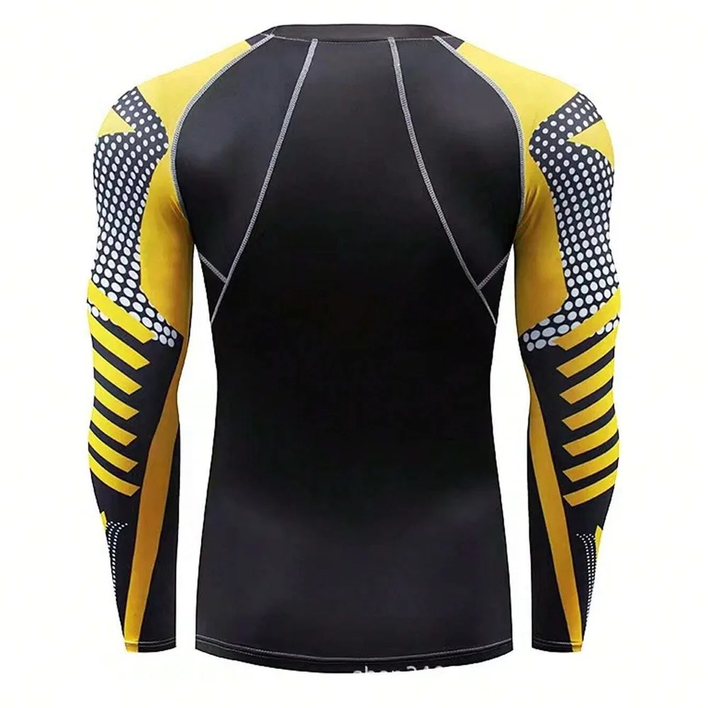Men Running Shirt Gym Bodybuilding Fitness T-shirt Long Sleeve Dry Fit Sport T Shirt Tight Rashguard Material: Polyester 90%, Spandex 10% Pattern: Print Sizes S,M,L,XL,XXL