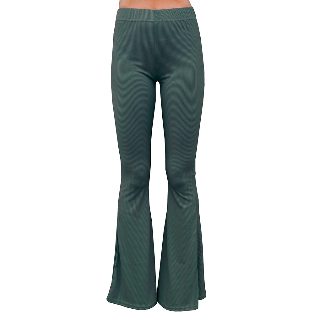 Ribbed Bell Bottom Flare Stretch Knit High Waisted Rise Hippie Bohemian Comfy Legging Loungewear Pants