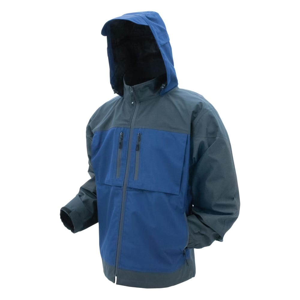 - Waterproof Hooded Rain Jacket • Adjustable, 3-piece tuck-away hood with visor and E-Z push cord locks • Fully taped and sealed seams • Zip front with splash-proof zipper • Dual zippered chest pockets • Zippered hand warmer pockets
