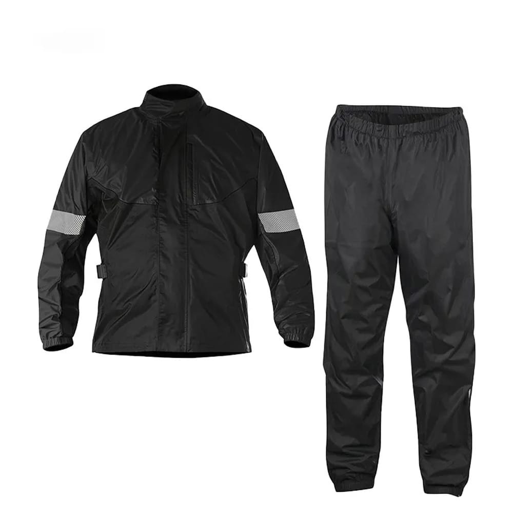 2-piece 100% waterproof motorcycle rain suit The ventilation system allows air circulation Soft polyester outer shell with PVC backing Jacket