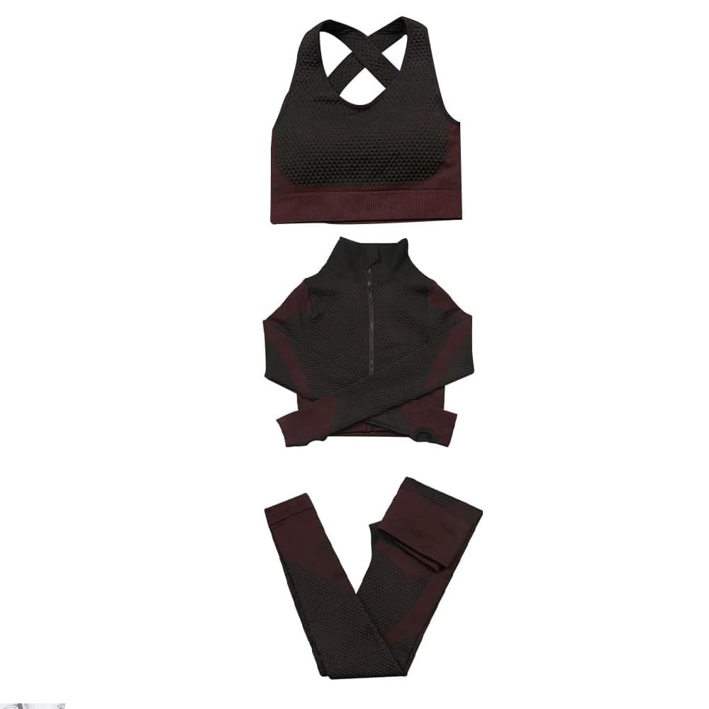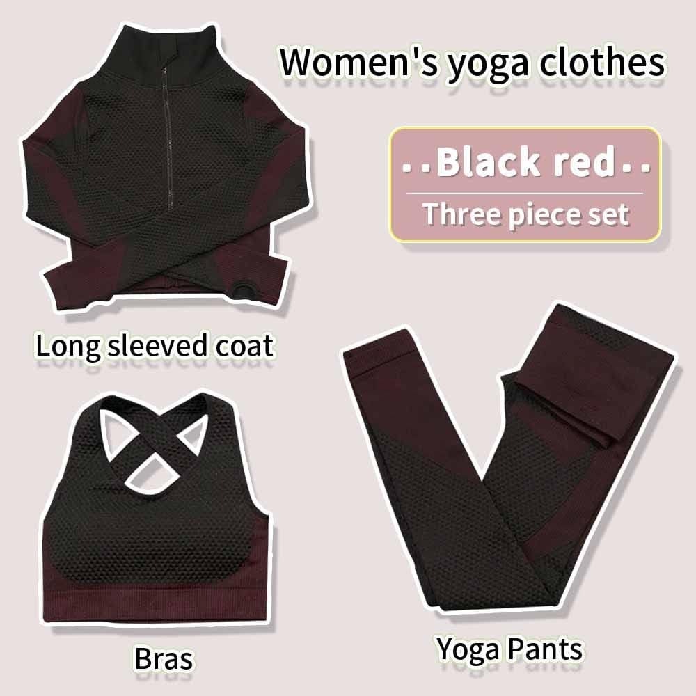 - Women’s 3pcs Seamless Workout Outfits Sets, Yoga Sportswear Tracksuit Leggings and Stretch Sports Bra Fitness
